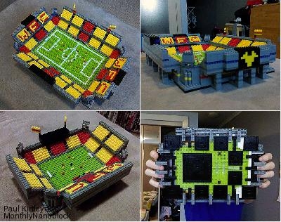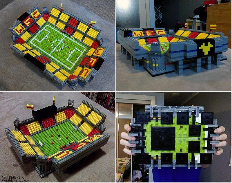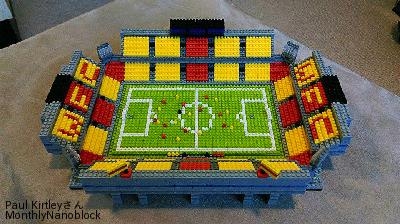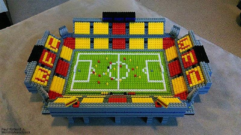 I decided to double the size in order to add more detail and make it look more realistic. Details now include pitch lines, 22 players, goals, a referee, a ball, substitutes benches with substitutes and managers, a players tunnel, WFC seat lettering, corporate boxes, flags, a press box, the club emblem (at the rear of each end of the stadium), stairs, pillars, floodlights, and a few more! I would like to add a roof and large LCD style screens in the future.