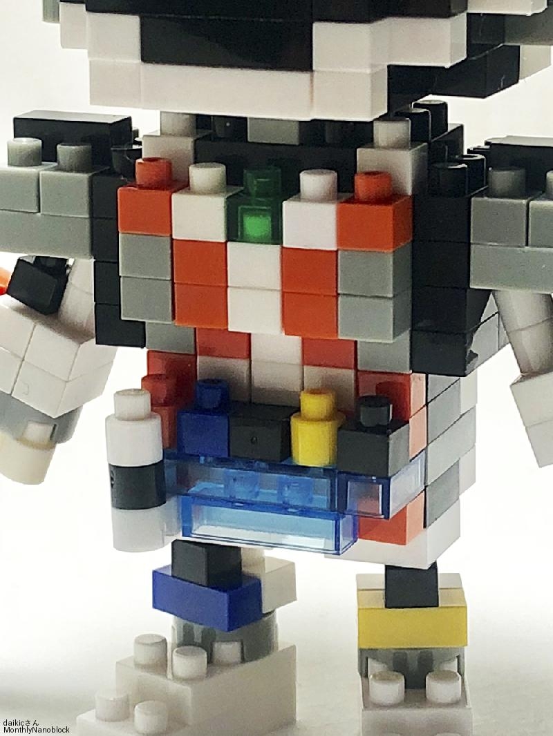 丸1ポチパーツと四角1ポチパーツを使い分けることによってベルト細部の表現をしています。