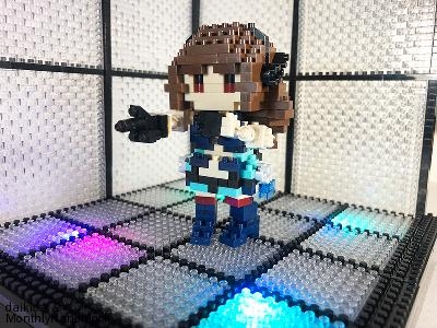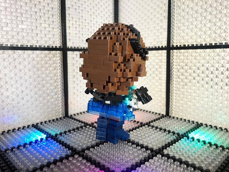 髪の毛の表現はうまくいったと思いますが、眉毛の表現が伝わっているかどうか…。ナノブロックプラスのように高さが半分のナノブロックパーツがあれば、もっと眉毛っぽく出来るのかな~と思うのですが。